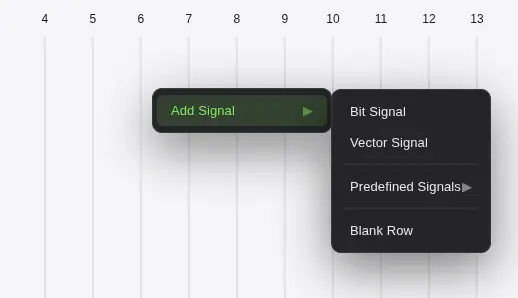 - Select «Add Bit Signal» or «Add Vector Signal»