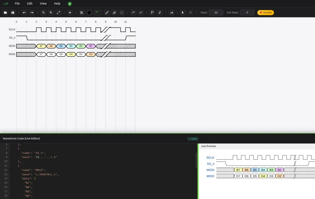 Looking for a WaveDrom alternative with a graphical interface? WavePaint gives you all the power of WaveDrom with an intuitive visual editor – no JSON coding required.